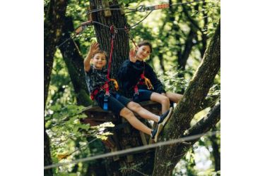 Profitez aussi de 4 parcours accrobranche : progressifs en difficulté et en hauteur, jalonnés de ponts, de filets, de tyroliennes ou de sauts. Vous évoluez de plateforme en plateforme, avec successions de passages plus ou moins périlleux : une expérience impressionnante et délirante ! 8 autres parcours accrobranche attendent aussi les plus grands.